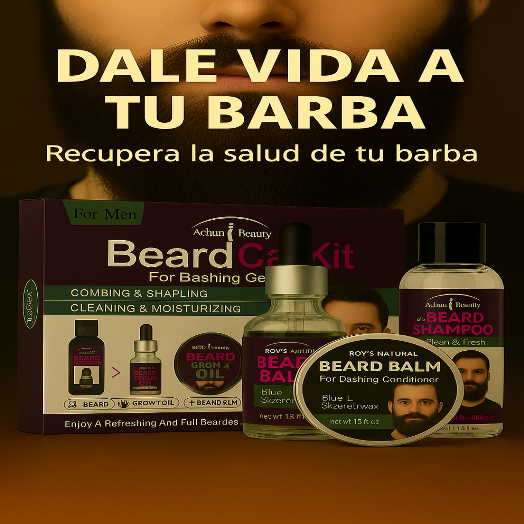 Kit de 3 pasos: shampoo nutritivo, aceite para el crecimiento y bálsamo hidratante. Estimula el crecimiento, aumenta el grosor y logra una barba densa y saludable en pocas semanas.